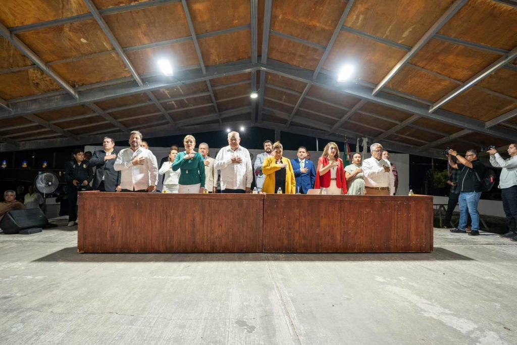 Acompañado de los titulares de los Poderes Legislativo y Judicial, de las Fuerzas Armadas y ciudadanos, el mandatario estatal rindió homenaje a las y los habitantes que colonizaron dicha localidad, en la que refirió el origen de la llegada de diversas familias desde otros estados del país, quienes confiaron en estas tierras que nos enseñaron importantes lecciones de vida, esfuerzo e identidad, además del legado que ahora marca el rumbo de las nuevas generaciones.