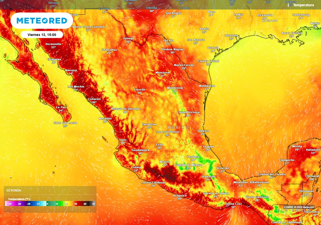 Estos dos días se prevén de 15-25 °C desde Chihuahua hasta el Valle de México en el interior del país y 20-30 °C en la Vertiente del Golfo, calentándose el noroeste y todo el Pacífico con 33-42°C, incluyendo península de Yucatán. El fin de semana se generalizaría el calor, pero nada extremo rondando 30-40 °C en costas y 20-30 °C en el Altiplano, refrescándose en zonas de lluvias.