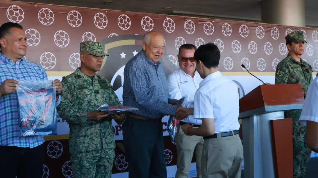 El gobernador del estado, Víctor Manuel Castro Cosío, entregó uniformes a los equipos participantes en la tercera edición de la Copa Pazífica de Fútbol, impulsada por la Procuraduría General de Justicia (PGJE), con el objetivo de fomentar la activación física y fortalecer el acercamiento de las y los estudiantes con las instituciones encargadas de la seguridad en Baja California Sur.
