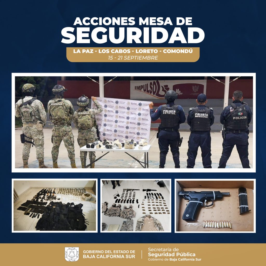 En los operativos desplegados en los municipios de La Paz, Los Cabos, Comondú y Loreto, participó personal de Marina, Defensa, Guardia Nacional, Fiscalía General de la República, Centro Nacional de Inteligencia, Procuraduría General de Justicia del Estado, Policía Estatal Preventiva y Policía Municipal.
